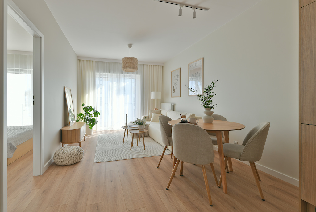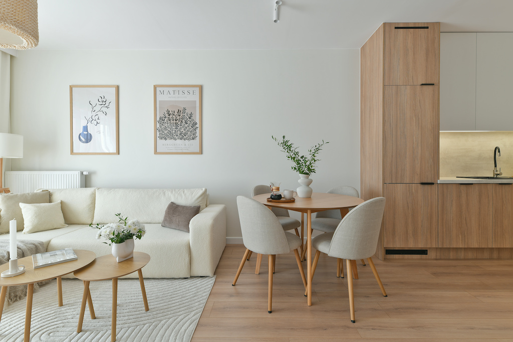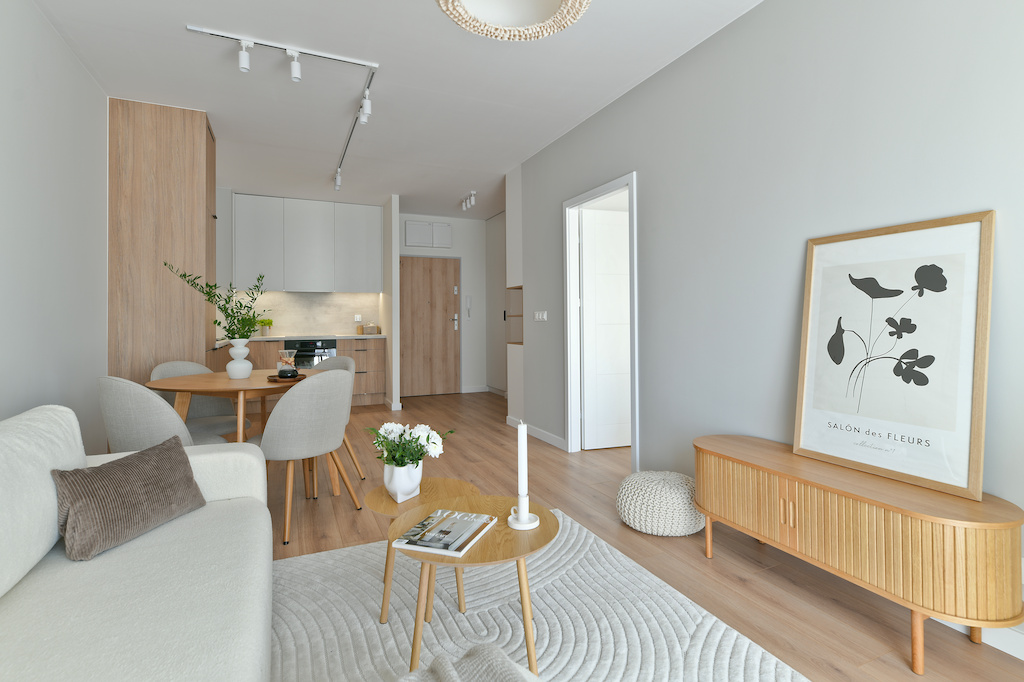 To poznańskie mieszkanie na Podolanach zdecydowaliśmy się urządzić w stylu skandynawskim. Prostota formy, minimalizm, duże ilości drewna. Kolory w odcieniach bieli, beżu i bukowych odcieni. Przy wpadającym do wnętrza świetle wygląda to szczególnie pięknie – spokojnie i delikatnie. W każdym z pomieszczeń konsekwentnie nawiązujemy do tego klimatu. Na koniec home staging oraz sesja zdjęciowa, której efekty z przyjemnością prezentujemy 🙂