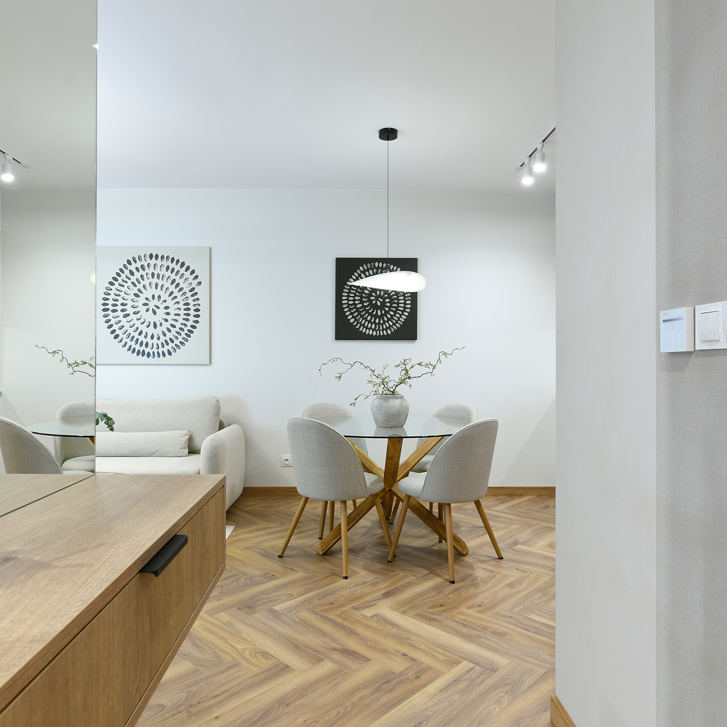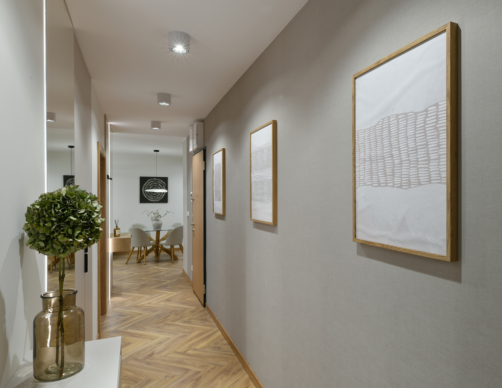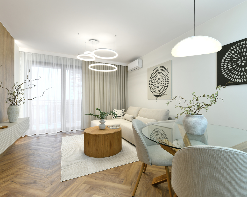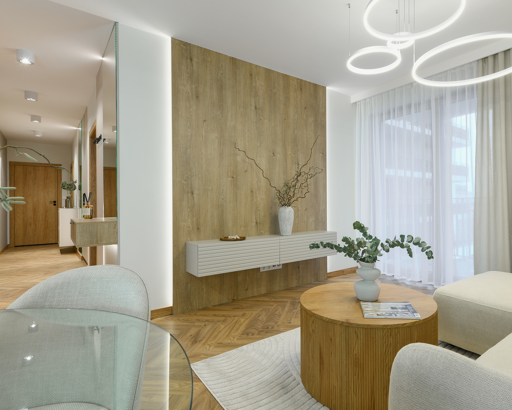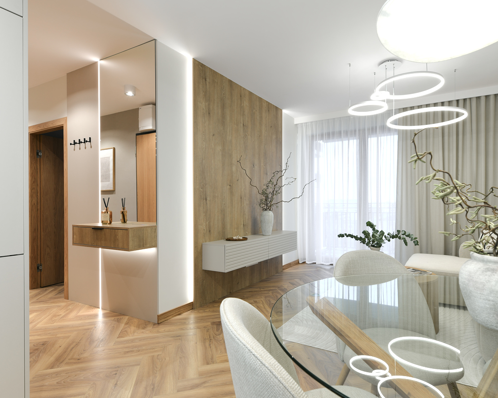 Zastanawialiśmy się, w jaki sposób wykończyć ten nowiutki ponad 60-metrowy, trzypokojowy apartament na poznańskich Jeżycach. Postawiliśmy ponownie na japandi, uznając, że jest to idealny styl pasujący do tego miejsca poprzez harmonijne połączenie minimalistycznej estetyki japońskiej z przytulnością i funkcjonalnością skandynawskiego designu. Prostota, naturalne materiały, stonowana paleta barw, równowaga między formą a funkcją oraz nacisk na stworzenie spokojnych, harmonijnych przestrzeni – to nam przyświecało kreując to wnętrze. Oczywiście zakończyliśmy naszą pracę wykonaniem odpowiedniego home stagingu oraz zaawansowanej sesji fotograficznej.
