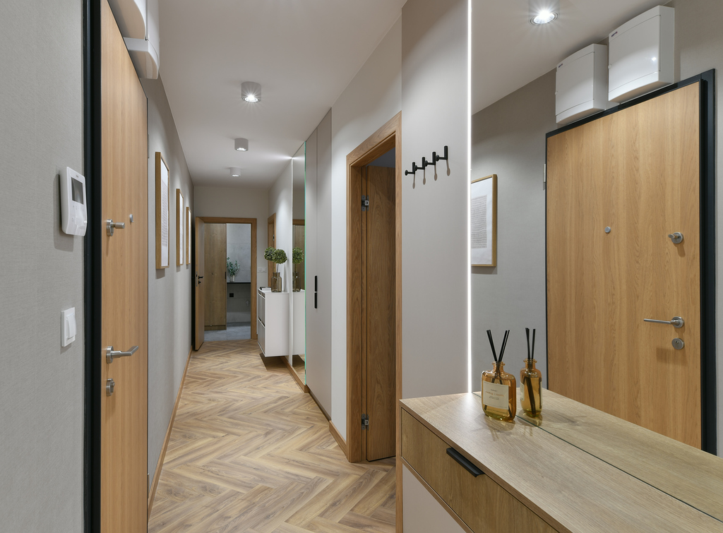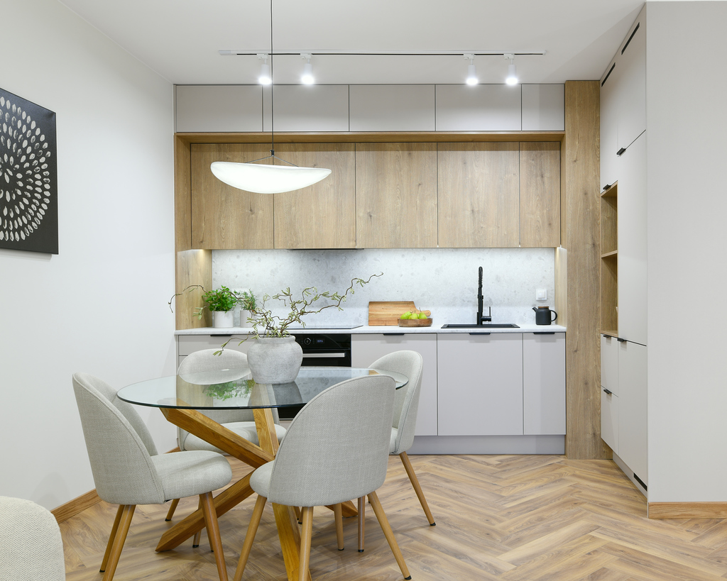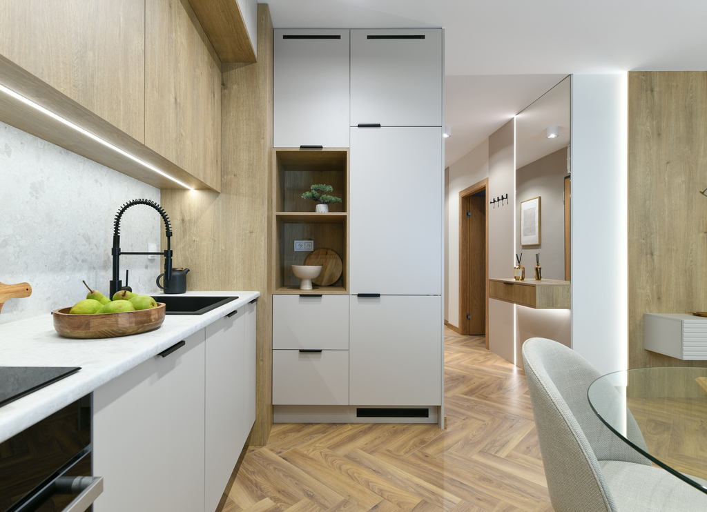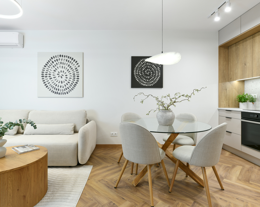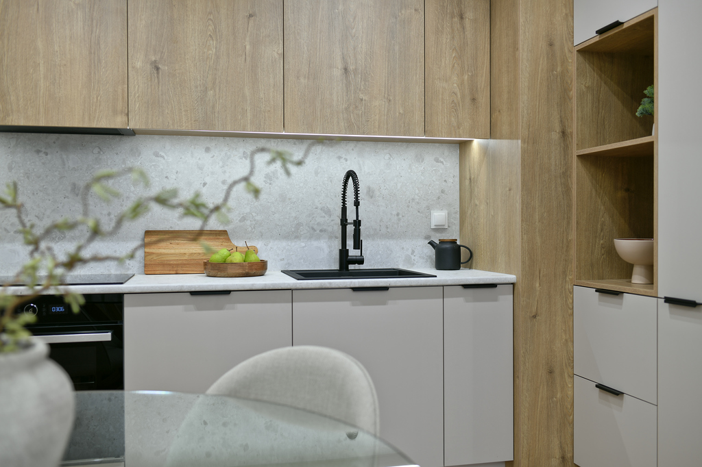 Zastanawialiśmy się, w jaki sposób wykończyć ten nowiutki ponad 60-metrowy, trzypokojowy apartament na poznańskich Jeżycach. Postawiliśmy ponownie na japandi, uznając, że jest to idealny styl pasujący do tego miejsca poprzez harmonijne połączenie minimalistycznej estetyki japońskiej z przytulnością i funkcjonalnością skandynawskiego designu. Prostota, naturalne materiały, stonowana paleta barw, równowaga między formą a funkcją oraz nacisk na stworzenie spokojnych, harmonijnych przestrzeni – to nam przyświecało kreując to wnętrze. Oczywiście zakończyliśmy naszą pracę wykonaniem odpowiedniego home stagingu oraz zaawansowanej sesji fotograficznej.